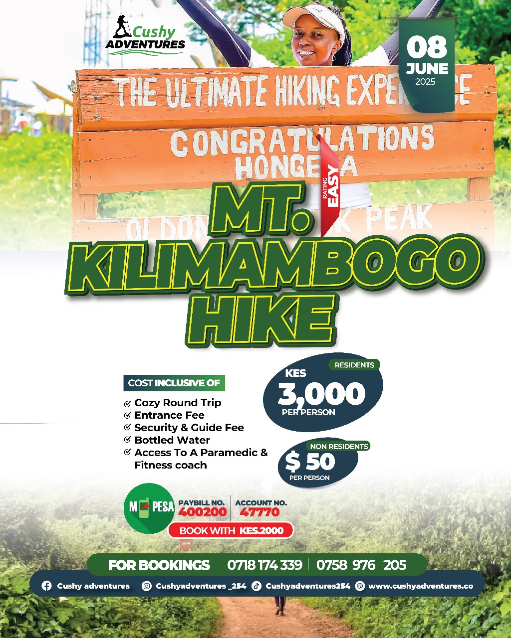 At Cushy Adventures, we turn every trip into a memorable experience. Our team of passionate guides, expert planners, and adventure lovers ensures your journey is safe, exciting, and stress-free. Whether it’s hiking majestic mountains, camping under the stars, or team-building in nature, we focus on comfort, fun, and authentic Kenyan experiences. We value quality, safety, and personal connection—making every adventure uniquely yours. Choose Cushy Adventures for seamless organization, breathtaking destinations, and memories that last a lifetime.